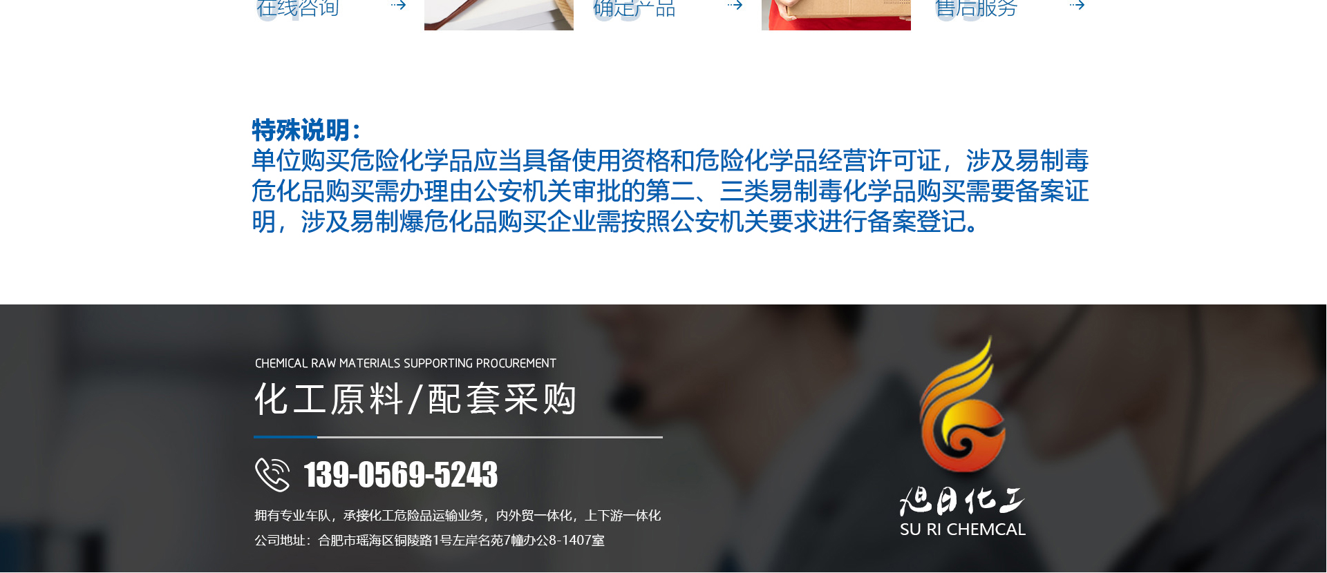合肥旭日化工有限公司是合肥市化工行業(yè)協(xié)會(huì)理事單位,該公司擁有獨(dú)立的供貨能力,專業(yè)的車隊(duì),良好的商業(yè)信譽(yù),完善的售后服務(wù)。秉承“精細(xì)化工、質(zhì)量為本、用戶至上、誠實(shí)守信”的企業(yè)理念。從事各類化工溶劑和原料的國內(nèi)貿(mào)易;為各醫(yī)1藥化工廠、印刷皮革廠、電子工廠等提供各種化工原料配套采購。目前,公司正朝著以貿(mào)易為基礎(chǔ)、以實(shí)業(yè)為依托,全球采購、全國銷售,內(nèi)外貿(mào)一體化,上下游一體化,具有綜合增值能力和復(fù)合競爭能力化工原料供應(yīng)商。本公司主要經(jīng)營的產(chǎn)品有:鹽酸、硫酸、三氯化鐵、甲醛、氨水、液氨、片堿等。合肥旭日化工有限公司為客戶提供優(yōu)良的服務(wù)及高品質(zhì)的產(chǎn)品,本公司經(jīng)銷的各種產(chǎn)品不僅在安徽地區(qū)深受用戶好評(píng),而且具有很高的市場占有率,產(chǎn)品行銷全國各地區(qū)。